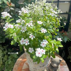 こんにちは😄 ①5月に作った寄せ植えです😄 毎年お迎えするフェアリースターと 思ってお迎えしましたが、よく見たらお名前が違いました💦 でもそっくり👀 リーズナブルなとっても小さな🌱でしたが、育ってきました😄 バックは、去年の挿し芽で 冬越ししたユーフォルビアダイアモンドスノーです🤍 どちらもお気に入りの夏のお花です💓 鉢が風で倒れて割れちゃったんですが😭お気に入りの鉢なので、ボンドで接着して、白いワイヤーでとめてます💦なんとな使えそう😌 ②ガブリエルでーす🤍 細枝でも咲いちゃうので 摘蕾しつつ咲かせちゃいました😌 この時期にしては、まぁまぁのお顔🤍 凄い暑さですが🔥 熱中症に気をつけて過ごしましょうね🍀