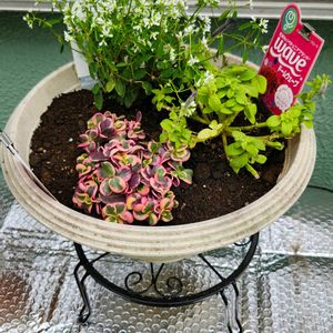こんにちは✨😃❗ 今日は昨日お迎えした苗を寄せ植えにしてみました🪴 みんな大きく育つみたいなので余裕を見て植えました😊 ヒメイワダレソウは玄関前の土のところが雑草まみれだったので少し草取りをして3株植えました(笑)