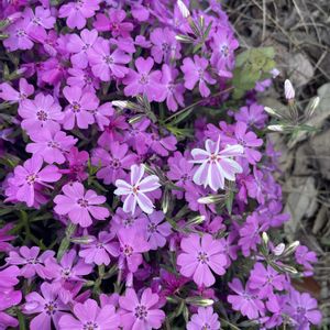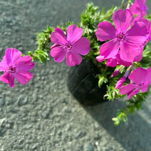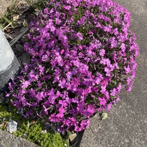 シバザクラ フロックストロット プランターに植えて3年ほどのシバザクラです😃昨年の花後に選定してますが、地面に付くぐらい溢れて咲いてます✨
