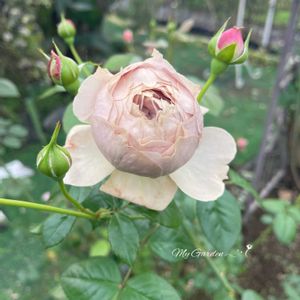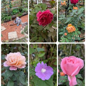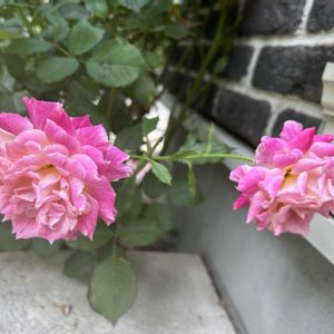 おはようございます😊 今日は☁☔寒いです 隣に住む長女は夜勤明け、パパさんは急遽仕事 昨夜、孫1号君はお泊まりだったのですが、朝から孫2号君を迎えに行って朝ごはんは大好物の里芋の煮付け😋 その後は庭で遊びにお付き合いです 1⃣何やら稼いでいる2号君ꉂ 🤭頑張って敷いた瓦チップが、こんなふうに役立っています そんな彼をお花も見守っています 2️⃣ブリリアントピンクアイスバーグ 3️⃣ダフネ 4️⃣シャルールが「私を見て🩷 」って 5️⃣ ステファニー ドゥ モナコ🇲🇨 このピンクが好きです🩷