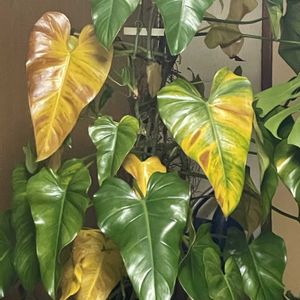 斑入り葉っぱがとても綺麗なフィロデンドロン•バールマルクス🍀 生育旺盛な為か鉢の中では茎が入り乱れて暴れまくってます😫 斑入りとノーマルな葉っぱが入り混じっているので株分けしようかなと思っています🤗