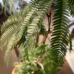 エバーフレッシュ スポーツジムのロビーには一年を通して色々な観葉植物が置かれ会員の安らぎの場所にもなっています。 多くの細い葉をが集まり、 直径2〜3センチ程の薄黄緑色の花を付けている 20年近く通っているのに初めてみた観葉植物では? スタッフに伺うも??? グーグルさんに伺いました エバーフレッシュ マメ科/コヨバ属 原産地:ボリビア,ブラジル 空気を清浄する効果があり,栽培も簡単で,見た目もよく人気の高い観葉植物 🔹特徴🔹 就眠運動 夜間に葉から水分蒸発していくのを防ぐために夜になると葉を閉じて眠るそうです (残念ながら私は昼間の会員) 和名:アカサヤネムノキ 名前の由来は、花後に赤いサヤの中に黒い種子の入った実をつけることから 花言葉:歓喜、 胸のときめき 幸運や夫婦円満の象徴とも