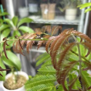 🏷️8日は葉っぱの発表会✨ エバーフレッシュ🌱🫧🫧 新芽すくすく育ってます❣️ 夜🌉!睡眠💤 広げてた羽根🪶を畳んでしまうんですよ〜 生きてる...💖 小さな苗木から曲げ!くるりん🌀 矯正中❗️
