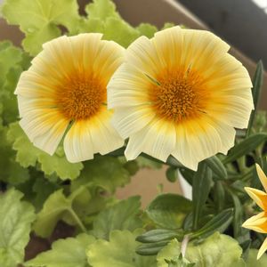 PWガザニアビースト カナリアスマイル 昨年の7月に半額になってたのをレスキューしました 無事にお花を咲かせてくれました pic❷ 毎日花がらを摘んでますが だいぶんくたびれてここ最近ちょっと元気がない様に感じます