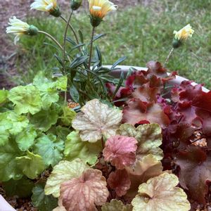 本日最後のお仕事🪣 先日お迎えしていた【ヒューケラ】さん達と【ガザニアビースト】さん✨ 夕方やっと寄せ植えできました😅 控え組ヒューケラさん達の中から選抜❣️ 悩みました〜😓 よし!カナリアスマイルさんにはこのヒューケラ🧡、と決めていたものとは変わり、しかも3つで寄せ植えとも決めていたのですが、今朝、気が変わって、この様な組み合わせになりました❣️😂 も〜自己満足の世界ですよね❣️ 私の中では上出来👏👏👏笑 この配色が落ち着きました🧡 アップルシブースト🍎さんを入れるかも悩みましたが、入れたことで引き締まったかな〜🙄 それでは、おやすみなさい🌙😴