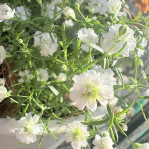 今日は庭活日和だが仕事だ〜(๑˃̵ᴗ˂̵) 1️⃣2️⃣3️⃣4️⃣4種類の寄せ植え🪴 ⭐️かすみ草 こんなに可愛い💕 ⭐️ベルギーマム 鮮やか🧡 ⭐️ガザニアビースト カナリアスマイル🌼他🌱 温室に引越し🤭まだチャック閉め無いけど、スクスク元気に育ってさすが見元園芸さんから送って来た苗🌱 5️⃣ブットレア バタフライキャンディ🦋🍬🍭💜 日の当たる所に引越ししたらとっても元気〜だけど一緒に咲かないから何処かが枯れてる🤣 今日も1日皆様にとって素敵な日になります様に🤗💞✨ 🏷️愛しの紫
