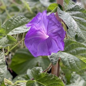 おはようございます 今朝のベランダ 朝顔4輪目 紫色でした 葉が邪魔して 花びらが丸く開きませんでした💧 朝は朝顔 夕方は白花夕顔 楽しんでいます🤭 では 本日も頑張ります♬