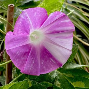 こんばんは 今朝投稿したかった朝顔 夜ですが🙏 1枚目の朝顔の種は ばっちり採って来年も咲かせたい🩷 🏷️2のつく日は斑入りの日 散り斑朝顔 斑入りモンステラで 参加させてさせて下さい😊🙏 皆さま お疲れ様でした