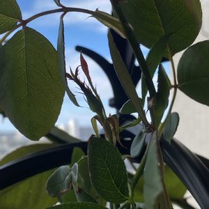 おはようございます✨✨ 爽やかな朝 午後からは雨予報 こんなに良いお天気なのに ベランダのバタースコッチと黒真珠 冬にオベリスクを立て誘引予定だったバタースコッチ 風に煽られ花芽が傷みそう 昨日、夕方 急に思い立ち 誘引までは出来ないけれど とりあえず まとめました🫣 と、とりあえずです🫣 改めて見ると大きくなったなぁ〜 黒真珠と並べて 😊🖤💛 バタースコッチちゃん 冬にはちゃんと誘引するからね 黒真珠ちゃん 冬にはちゃんと植え替えするからね さて 日曜日 何しよう🤭