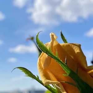 こんにちは♪ お天気も良く暖かな土曜日です ベランダのバタースコッチ💛 日向ぼっこ 🐶 青空とバタースコッチ 🏷️土曜日は お空の発表会に参加させてください😊🙏