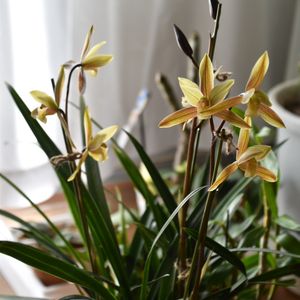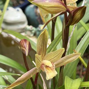 おはようございます✨ 先日投稿した和蘭・一葉が咲きました🧡 2鉢あるのですがどちらもたくさん花芽が付いています。 山野草の春蘭を大きくしたような感じの花です。 春蘭も好きで庭にあったのですがいつの間にか消えてなくなりました💦 30年ほど前は家の付近の雑木林にも自生していたのですが今はもう見当たらないですね🥹