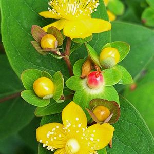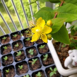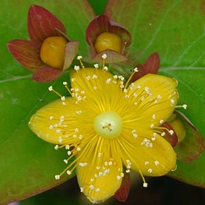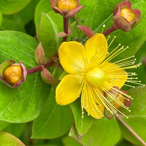小坊主弟切(こぼうずおとぎり) ヒペリカム アンドロサエマム 一般的にヒペリカムと呼ばれるものですね😉 2年前に種から育てて初めて花を咲かせました🤗 砂粒より小さな種をいただいて、蒔いた途端に分からなくなって、出てきた芽も「草かな?」って半信半疑😅 間違い無い事がやっと証明されました😁 あとはツヤッツヤの実が出来るのが楽しみです。親が何色の実なのかも聞いてないんだけど、普通は赤🔴でしょうね、きっと…🤔