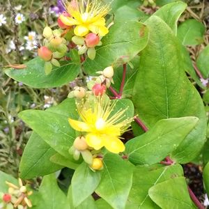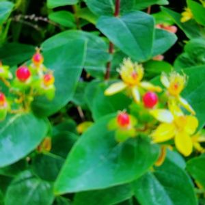 庭のヒペリカム2種 ①ヒペリカム・アンドロサエマム ②今年は沢山咲いて実もいっぱい 2株地植えしてあり ③こちらは実が赤い ④こちらはピンク色 今年初めて違いに気が付きました ⑤ヒペリカム・グランディフロラム 今年新しく仲間入り オトギリソウ科 耐寒性低木 ブッシュ状、矮性品種 開花5〜8月、草丈25〜40㎝と記載 調べても詳しい情報が少なく ヒペリカム・オリンピカムの園芸品種ではと思います よく似ているようです (未投稿でした) 今日も良い1日となりますように🌼