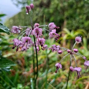 キュンキュン乙女倶楽部の皆さん 今日は今月の倶楽部活動ですよ🍀 桃色🩷投稿を楽しみましょう🥰 🏷️は、桃色界隈 飛び入り参加も大歓迎です❣️ 雨の中…庭を散歩すると、思わぬ場所でヤマラッキョウの花に出会いました⤴️