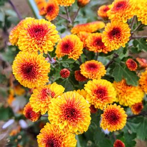 ガーデンマム・ジジ 可愛い八重のポンポンマム 散歩道の家庭菜園で満開 菊の花のイメージが翻されて。