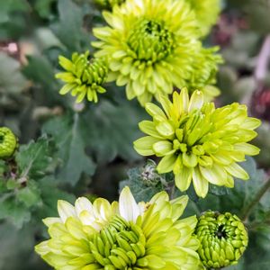 散歩道のみどりの菊 今年の菊は小さくて ① みどりの菊 2025年 ② ⬆️と同じ花 2023年 ③ リリーちゃん ④ ひなたちゃん ⑤ あおいちゃん 菊って不思議だな。 何年も経つと、先祖返りするのかな?