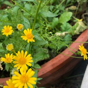 ダールベルクデイジー こぼれだねで増えまくり、意図せずお花畑状態になっております😅 あまりよろしくない土でも、こぼれだねでどんどん増える割には、こあなたはこっちで咲いてくださいなと移植を試みると、見事に枯れます😭 強健なんだか繊細なんだか、よくわからない子です😅