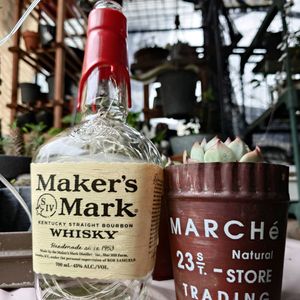 雨です WHISKYは飲めないんですか この瓶が欲しくて買いました 中身はダーリンに協力してもらい 瓶はライトにしたかったので ソーラーセンサーライトをねじ込みました 日没後輝きます♥