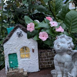 今日も一日お疲れ様でした🍵 こちらは局地的なのか❓ジムの帰りに身の危険を感じる程の前が見えない大雨⚡と雹😱 怖かった~😭 帰宅してもまだ大雨と帰宅途中程で無いにしても雹😱 車から出て家に出るタイミングを待ちました🚗🏠 でも、良いことがありました 本日の水遣り不要😅 少し涼しくなりました🎐 最近ハマり続けている モルタル造形 ソーラーライトを入れて鉢付きの家を作りました☺️💡´-🏠 ブラックレースはリーゼントのお兄さんと化し、ちょうちょがとまっていました🦋 マリーヘンリエッテ 暑いのに強い💪🌹