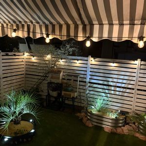 まだ作り途中の庭です🌱 夜のライトアップが毎日楽しみ😊 庭に無関心な家族ですが、娘は庭でランチしたいと完成を楽しみにしてくれてるようなので引き続き頑張ります💪 次はウッドデッキを取り付けます!