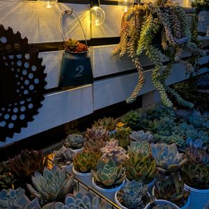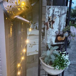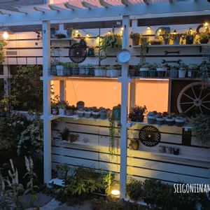 こっちのパーゴラ兼多肉棚にもソーラー設置。雰囲気良くなったー😇 今回も汗だく🫠そろそろ涼しくなった時の植え替えとDIYの準備を進めないとなー