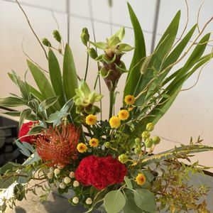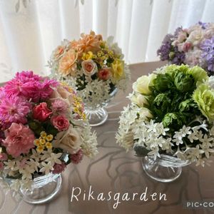 ①カラーを使ったアレンジを一回作ってみたかったのです💕 ②③違う角度から。 ④今日は午前中時間があり、アレンジメント3つ作りました🤭楽しかった〜 ⑤千日紅はいつ見ても可愛いわー😍 また作っちゃいました。 このままドライフラワーにもできます。