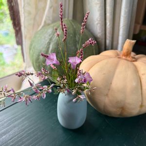 おはようございます(*^^*)☀️ お庭のお花さんたちを少しもらってリビングに飾ってみました。 萩が入るとより秋っぽさが増加しますねぇ😆 ところで。 やっと気温が落ち着いて、朝夕すっかり過ごしやすくなってきたなぁって思ってたら、今頃になってグリーンカーテンの朝顔さんたちが爆増‼️ いまかなり理想的なグリーンカーテンになったのを眺めながら… いや 今じゃないよね… という思いが込み上げてくる😅 贅沢かもしんないけどさぁ… 間違ってもないよねぇ…? 🍠🍂🍁🌰🎃🌾🍊🍐🍇
