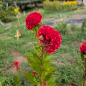 今日のお花鶏頭です ①②③ケイトウ(里山)④寄せ植え(鉢植え)⑤セロシアと花遊び