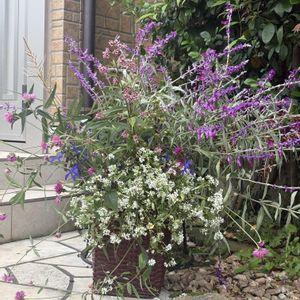 お庭の花🌸で花遊びやってみました🤗💞✨ アメジストセージ、センニチコウ、フジバカマ、ユーフォルビアダイアモンドスノー、他 長いお花達が邪魔になり出したので、カゴに投げ入れただけ🤣 この後逆さまにして、ドライフラワーに挑戦します😊 今日も寒いけど、ずっと庭活出来るのでもう夏の花はバッサバッサ切って冬のお花達を迎える準備❣️ 今日も1日皆様にとって素敵な日になります様に🤗💞✨