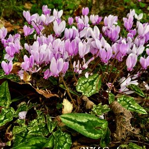 原種シクラメン🩷🤍 落ち葉🍂の暖かい布団に囲まれて… 元気に咲いていたョ🌿 《スライドpic》 ① ~⑤ 園内を散歩しながら、、、 見かけた度に🤳💕カワイ~♡♡♡