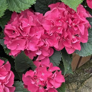 アジサイ ハイドランジア No.53 ダンスパーティーハッピー 以前、ダンスパーティーハッピーピンクを紹介してますが、その時のピンクはとても鮮やかでした! これは、色が濃く、また違った印象です。 加茂セレクション 花の中心部が白から濃い色に変化 葉も緑が濃く艶あり