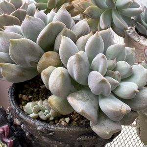 ( *˘ᵕ˘*) ⁾⁾こんばんはꔛ⚝.˖٭ 涼しくて体がとっても楽ですね😆 多肉たちのお顔を見ていると 同じ感じがします☺️ 下旬には気温も 落ち着いてきそうですね🎶 みんな、もう少しだよ〜!!! 1⃣シュークリーム 葉挿しがとても簡単な子🍃 ただ、私のお水が足りず‥ 大きくなる子は少なかったりします😅 2⃣ビルゲイツ あちこちから子株が ニョキニョキ| ε:)_🌱 成長が楽しみ( * ॑˘ ॑* )⁾⁾ 3⃣portさん苗 夏越しできたようです🤔 数個しかないportさん苗🪴 もう少しで1年になります🗓