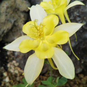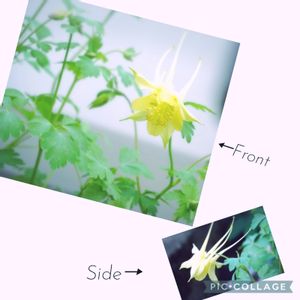 零れ種の黄色いオダマキ 横から見ると流星☆。.:*・゜ みたいにかっこいい😆 正面はこんなにも美人さん 💕💕💕