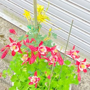 昨年連れて来たオダマキ 綺麗に咲いてくれましたー♥️ 可愛いです🌱😍 彼方此方に蕾沢山🎶 朝イチ花パトも楽しみ〜🥰 ぱーっと咲くのも待ち遠しい🎶