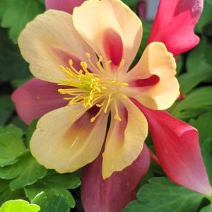 おはようございます 今日のお花 オダマキアーリーバードホワイト&レッド 今年は地植えしました〜