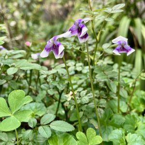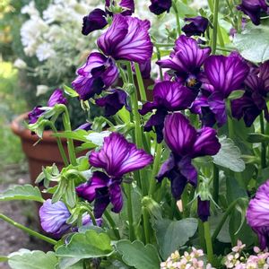 今朝の庭から… 7:47〜8:37 ❶❷ 大好きなパンダすみれ..🐼♡ ❸ 薄暗い裏庭でひょろひょろと咲く アメジストセージ ❹ 白のブッドレアとシコンノボタン ❺ 昨夕植えたばかりのメゾンドビオラ ・リュクス フリル(濃紫) ・リュクス アンティーク(薄紫) ・リュクス ラパン(うさ耳) 🏷️木曜モフモフ