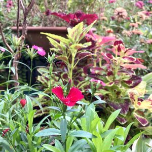 今朝の庭から… 7:33〜8:02 気温がぐっと下がり肌寒い なでしこやジニアの赤が鮮やか ❸メゾンドビオラ.リュクスアンティーク ❹ 地植えのラベンダーセージと秋明菊 🏷️真っ赤な火曜日 🏷️ビオラ・パンジー祭り♪