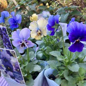 ビオラを2点購入しました😆 紫…グランブルー 黒…歌劇スター 小さめの鉢に単品植えです♪