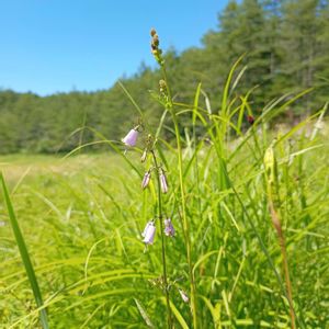 ツリガネニンジン(釣鐘人参)キキョウ科ツリガネニンジン属 1⃣2⃣3⃣ 入笠山のツリガネニンジン 青空に映えて綺麗です 7月31日 4⃣5⃣ 近くのお山のツリガネニンジン ほぼ白い色をしてました。 7月24日 北海道から本州、四国、琉球諸島まで広く分布する多年草です。花は釣り鐘形で下向きに咲き、花柱が花冠からわずかに突き出ています。直立した茎を折ると白い乳液が出るのが特徴です。若芽は山菜料理の横綱格と言われるほど美味しいそうです。 和名は、その釣鐘型の花と、漢方薬の朝鮮人参の太い根に似ているところから名付けられたと言われています。