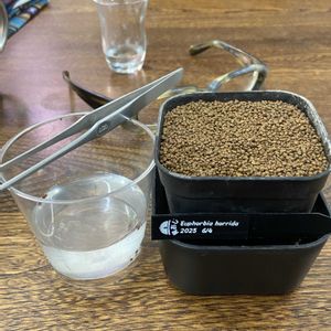 にょほほ〜 みしょり隊ですにょ〜 ホリダのタネが少し取れたので 今から蒔きます🤣🤣🤣 ①昨日から準備していたので ならべるだけ ②並べてラベルしてフタして完成 ③先月蒔いたオベサ当然暴れてます🤣🤣🤣