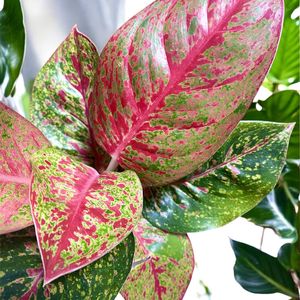濃い緑色の葉っぱに赤やピンクの斑模様が入るアグラオネマ•ファイヤーワークス💚❤️🩷 茎はピンク色をしており、葉脈を中心に濃い赤色の斑がはいり😍幅広の葉っぱは硬くて丈夫で育てやすいアグラオネマです🤗