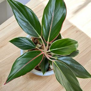 濃いグリーン色の葉っぱにピンク色の主脈と覆輪が美しいアグラオネマ•サファイア💚 このピンク色のラインが無ければただの葉っぱに過ぎないです🍀 でも茎は薄ピンク色をしていてシックな感じが良いです🤗