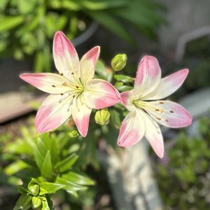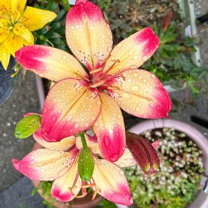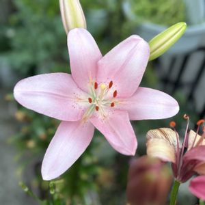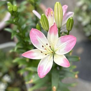 スカシユリ シュガーラブ🩷 プランターに4つ🍀.* この子が1番に咲きました🌸 (,,>᎑<,,)カワイイ*•.❥*