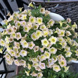 自転車の前カゴの横に吊るしてる サフィニアアート トラネコ🐈🐾 もりもりで可愛くってたまりません😍💕