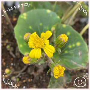 おはようございます😃 今日も皆さまにhappy〜💕 ツワブキのお花が咲いてきました♬ 3年過ぎたかしら〜移植二回💦根付いて良かったです♬ ③〜セントポーリアの花芽がやっと出てきました♬🐽ちゃんもオチリ出して喜んでおります😆♬ 今年もあと2ヶ月となりました💦 早いですね💦 来月もよろしくお願いします🙇♀️