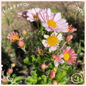 おはようございます😃 今日も皆さまにhappy〜💕 職場のピンク色のお菊さんが咲いてきました♬淡いピンク🩷濃いピンク🩷次は赤かしら〜蕾ちゃんがびっしりです♬