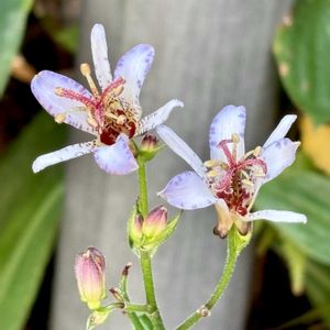 今日のお花 ほととぎす💜 いつもの空き家のお庭で 昨年より、小ぶりで、 花の形も変形している様な〜⁈ ヤブランも色が薄い感じでした💦 酷暑の影響でしょうか⁉️ お手入れが、無いせいでしょか❓