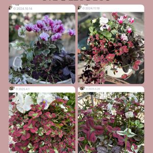 今日は2024年10月に寄せ植えして投稿した備忘録🪴🪴 ⭐️シクラメン ⭐️プリンセスクローバー🍀 ⭐️アジュガブラック ⭐️パンジー ↖️10/14シクラメンが綺麗💞 ↗️11/19皆少しずつ大きく(๑˃̵ᴗ˂̵) ↙️4/1パンジーも可愛く😍 ↘️5/20パンジーもまだ頑張ってた❣️クローバーも大きくなり、何度もカットして、お花もいっぱい咲いてくれた💕 2️⃣ そして現在の姿🤗💞✨ パンジーは⭐️になっちゃったけど、アジュガもシクラメンもまだ生きてる〜💓クローバー♣︎も、まだ上へと伸びようとしてる😊 頑張れ〜と応援したくなる寄せ植えです🙏💪💕💕 今日も仕事🥹 今日も皆様にとって素敵な日になります様に🤗💞✨