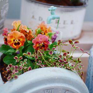 * 時計のプランターにはミルフルとプリンセスクローバーを! オレンジ色可愛い♡ 去年クローバーいっぱい増えて可愛かったから今年もそうなるといいな〜