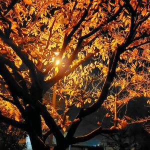 12月も 宜しくお願いいたします😉 暖かい師走になりましたね🎵 帰宅途中 18時過ぎの福祉園の広場 紅葉した桜の木です。 オレンジ色の街灯に照らされ 彩りが浮きたって更に美しさが増しています✨